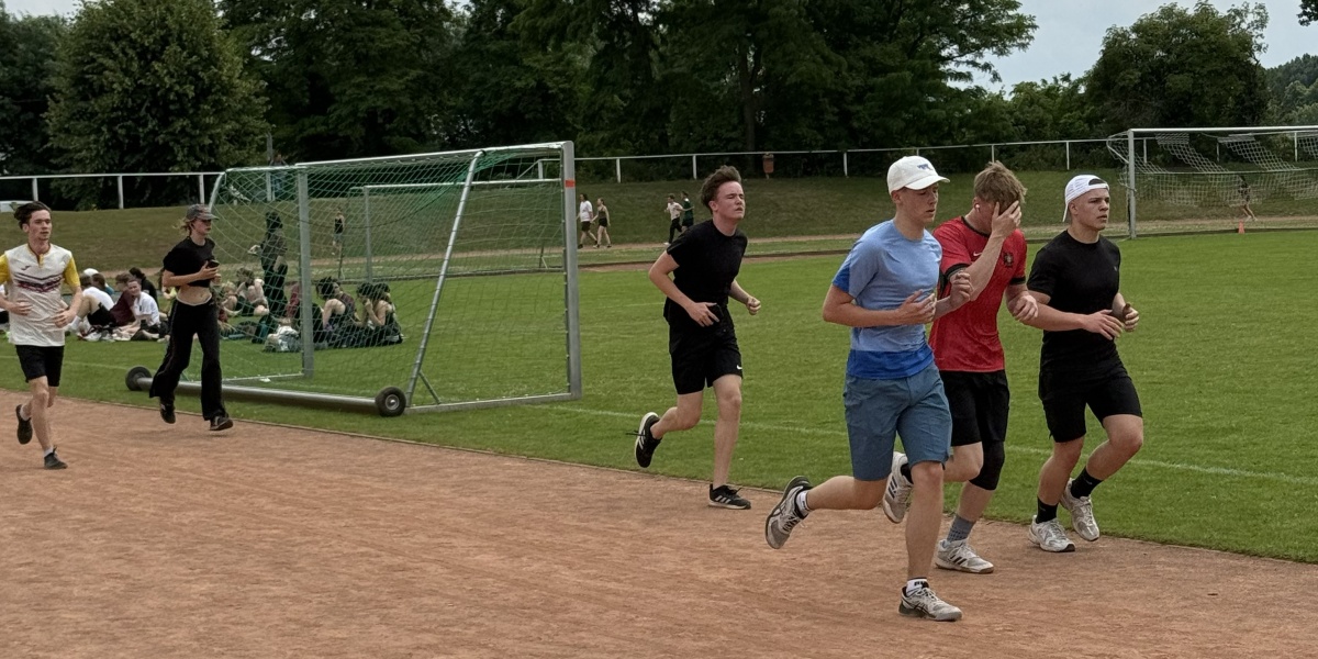 Insgesamt nahmen 34 Klassen und sechs Tutorenkurse teil, was rund 900 Lernenden im Alter von 10 bis 18 Jahren entspricht. Organisiert und begleitet von ihren Klassenlehrerinnen und Klassenlehrern kamen die Gruppen nach einem festen Zeitplan ins Stadion. Vor Ort konnten sich alle umziehen und erhielten eine kurze Einweisung, bevor es sportlich losging. Dabei sorgte das Konzept für einen reibungslosen Ablauf: Jede Klasse wurde in zwei Gruppen aufgeteilt. Während eine Gruppe 20 Minuten lang Runde um Runde lief, übernahm die andere das Zählen – danach wurde gewechselt. Bereits im Vorfeld hatten die Schülerinnen und Schüler Einsatz gezeigt und eigenständig Sponsoren organisiert, die pro gelaufener 200 Meter-Runde einen frei gewählten Betrag spendeten. Einige Teilnehmende konnten dabei sogar bis zu sechs Sponsorenverträge vorweisen.